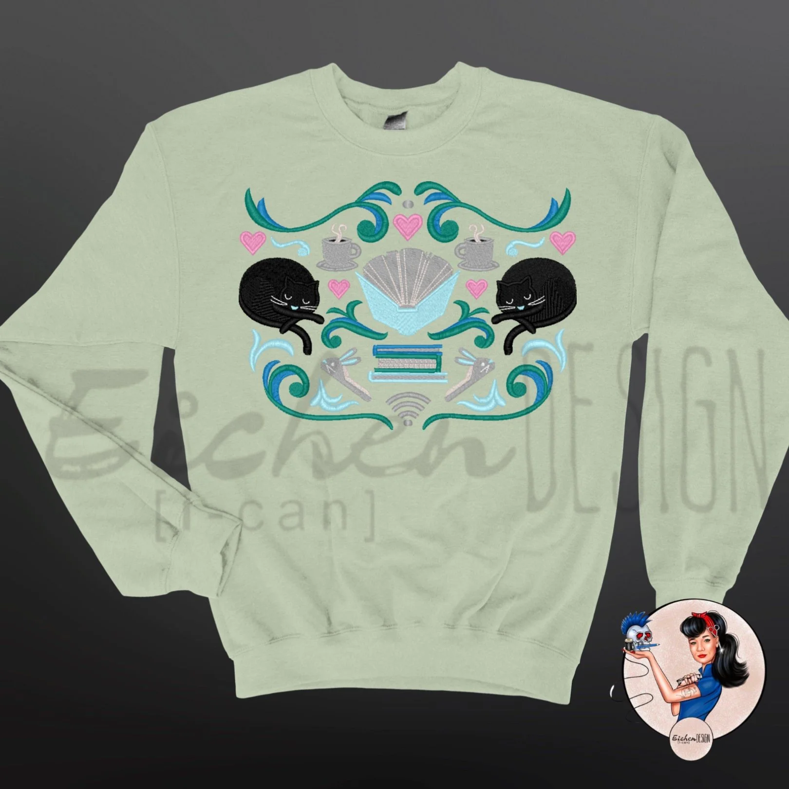 Cozy Kitten Books & Tea Embroidered Sweatshirt - Choose Your Own Colors!
