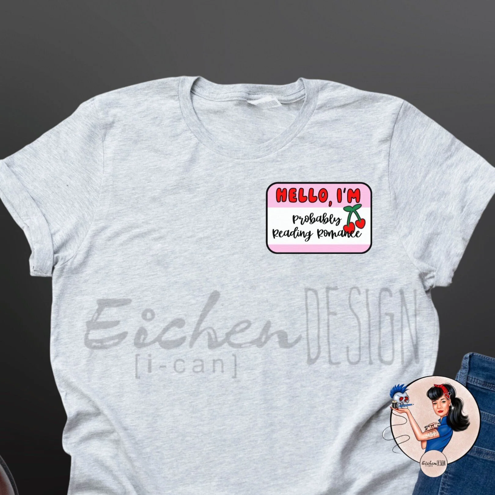 Hello I’m Probably Reading Romance Name Tag T-Shirt
