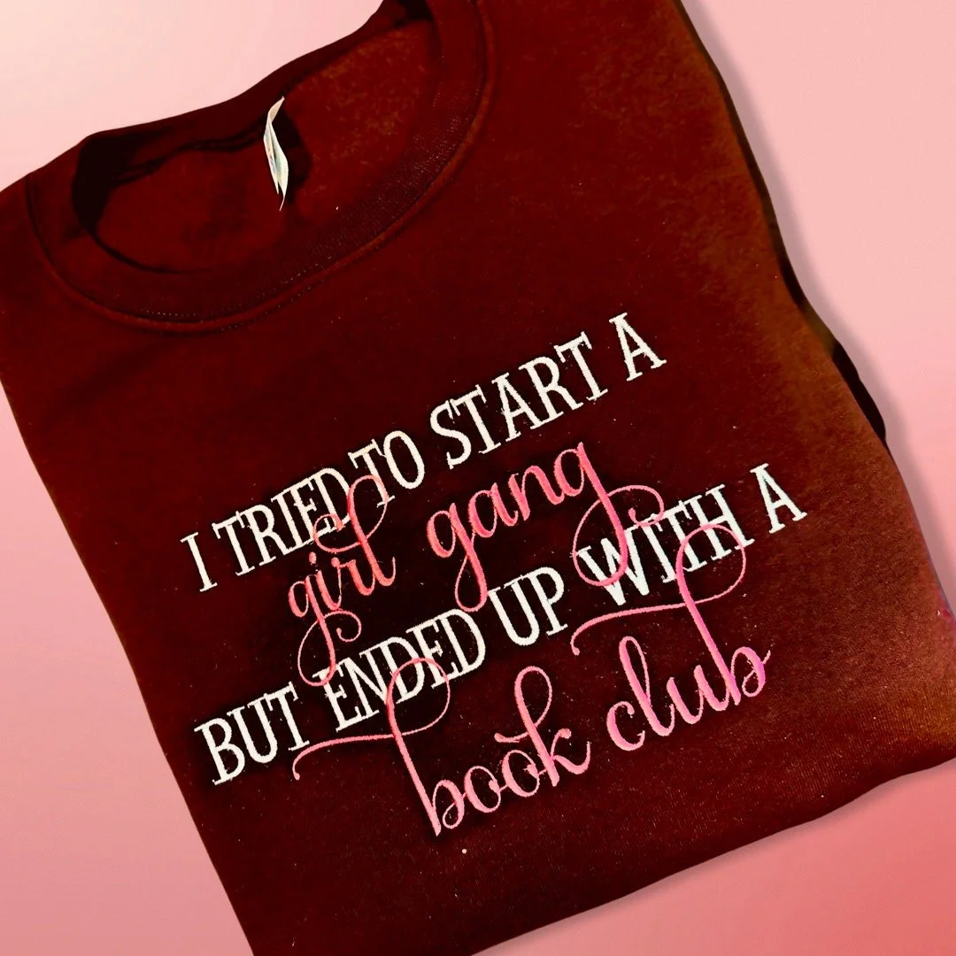 Sweatshirt - Girl Gang Book Club, Embroidered, Gift for Reader, Book Club Gift, Girl Power, Bookish Merch, Book Accessory, Booktok