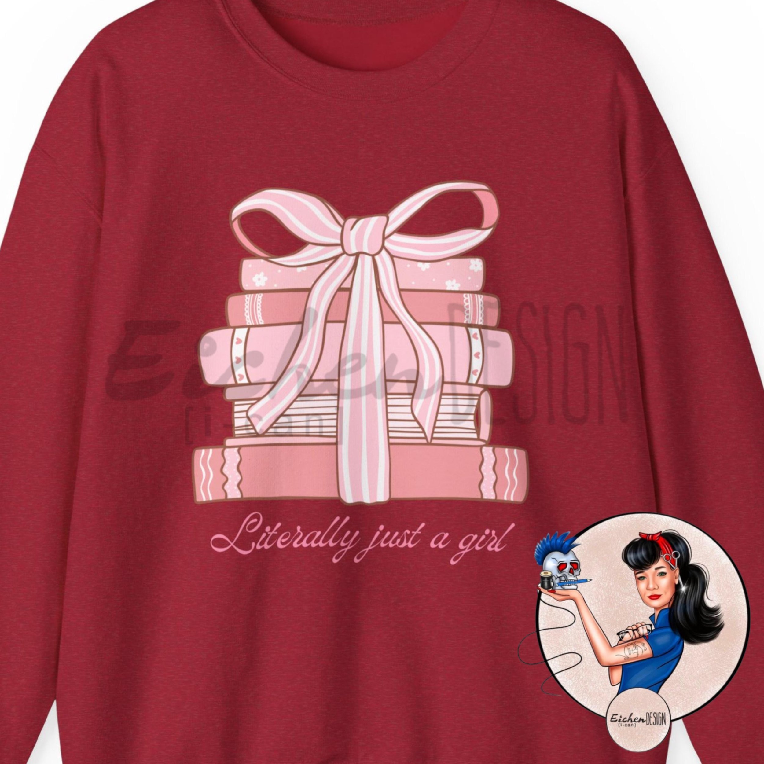 Sweatshirt Literally Just a Girl Book Crewneck, Cozy Unisex Sweatshirt, Booktok Bookstagram Book Lover Reader Gift Feminine Pink Librarian