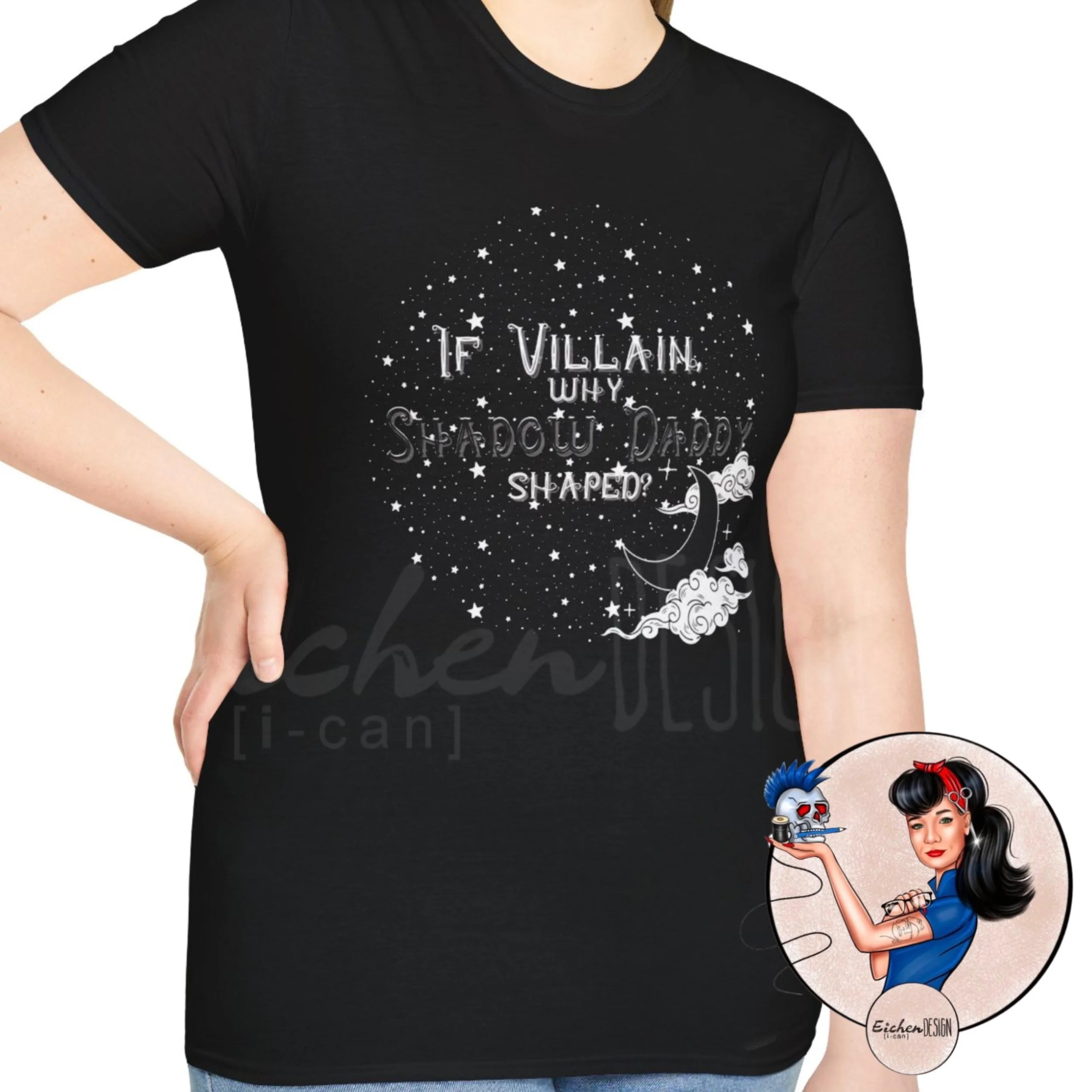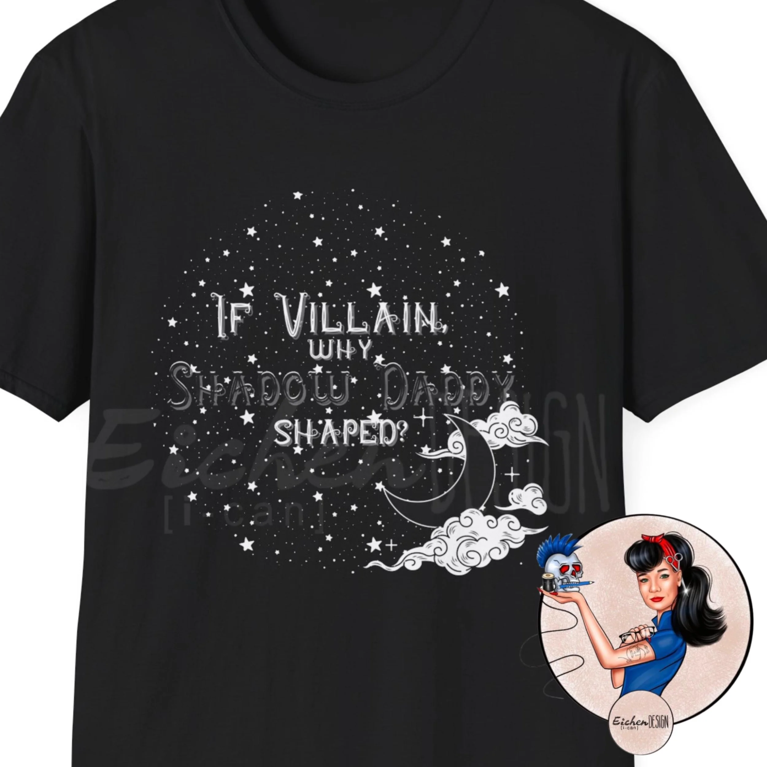 T-Shirt If Villain Why Shadow Daddy Shaped, Perfect for Villain Lovers, Morally Gray Black, Romantasy Tee, Cosmic Design, Fantasy Moon Stars