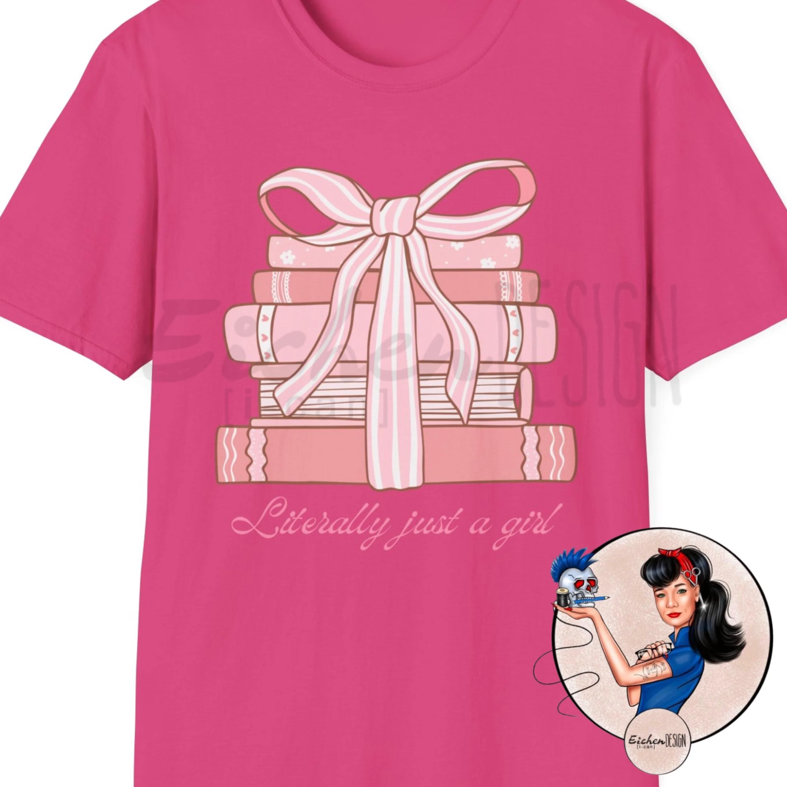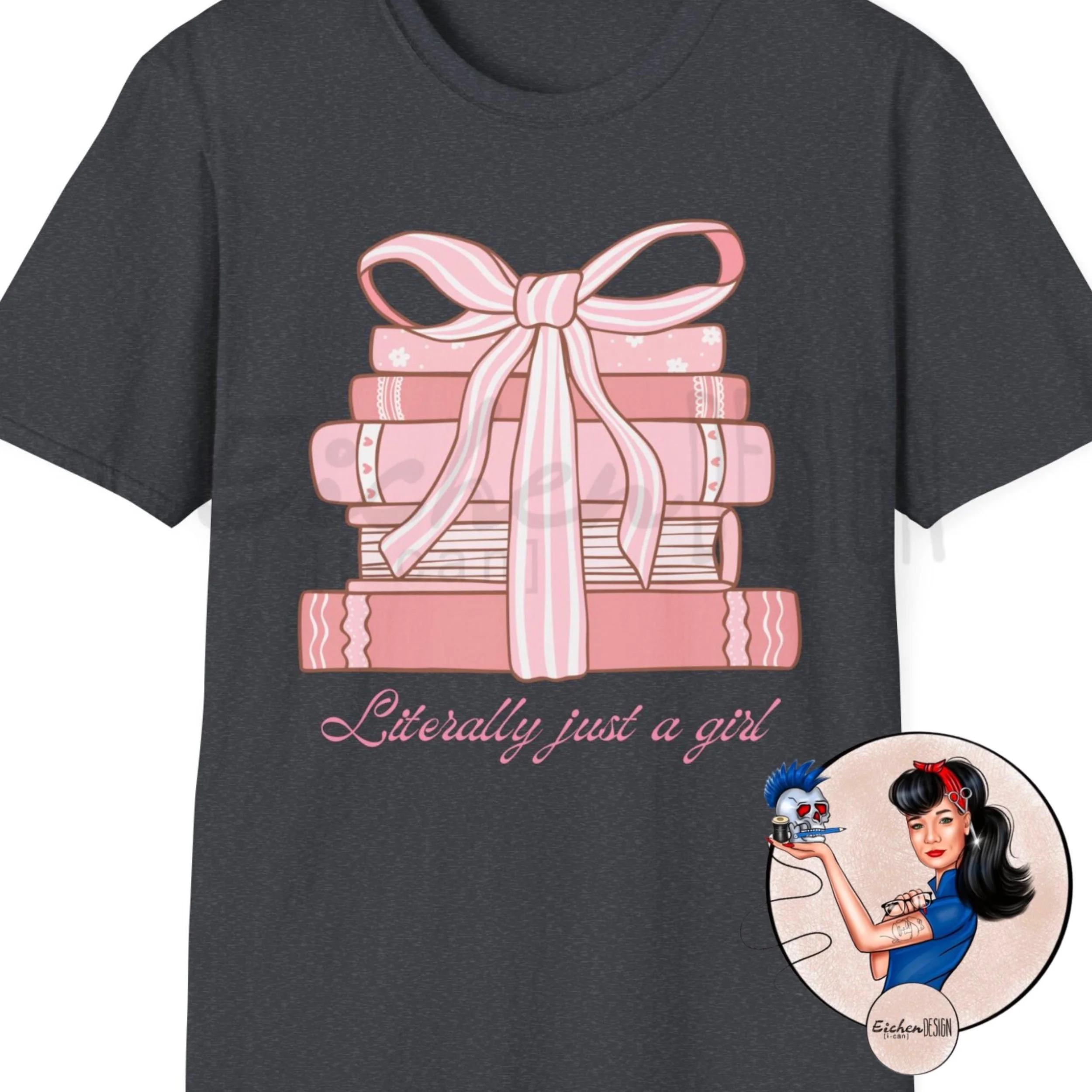 T-Shirt Literally Just a Girl Book Tee, Softstyle Unisex Tee, Perfect for Book Lovers, Book Stack Pink Coquette Reader Librarian Bow Preppy