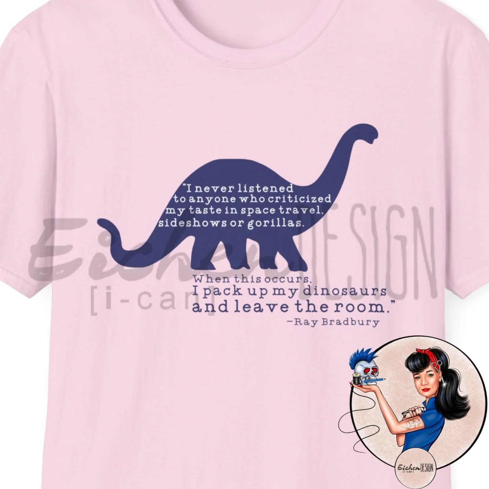 T-Shirt Ray Bradbury, Dinosaur Quote Fahrenheit 451 Bookish Literary Gift Librarian Reader Author