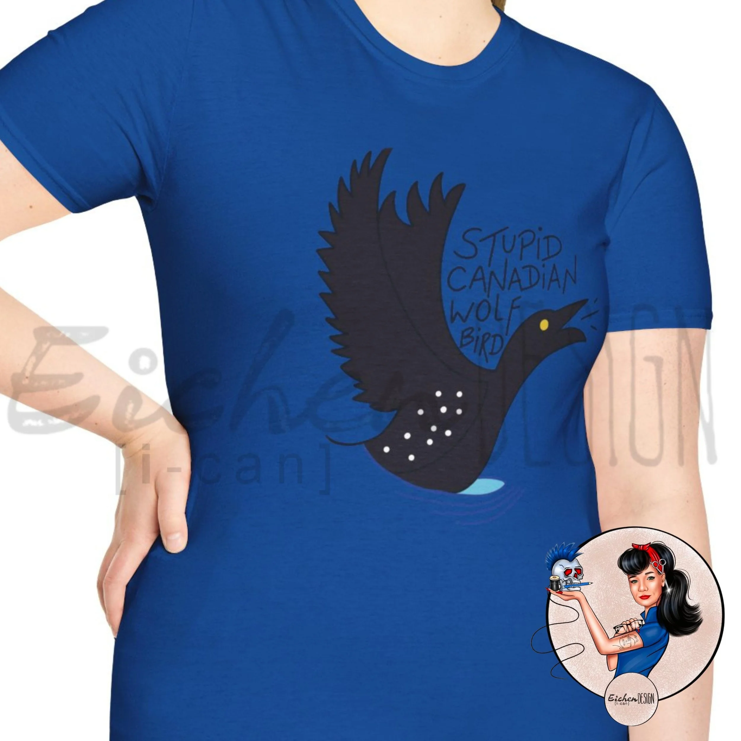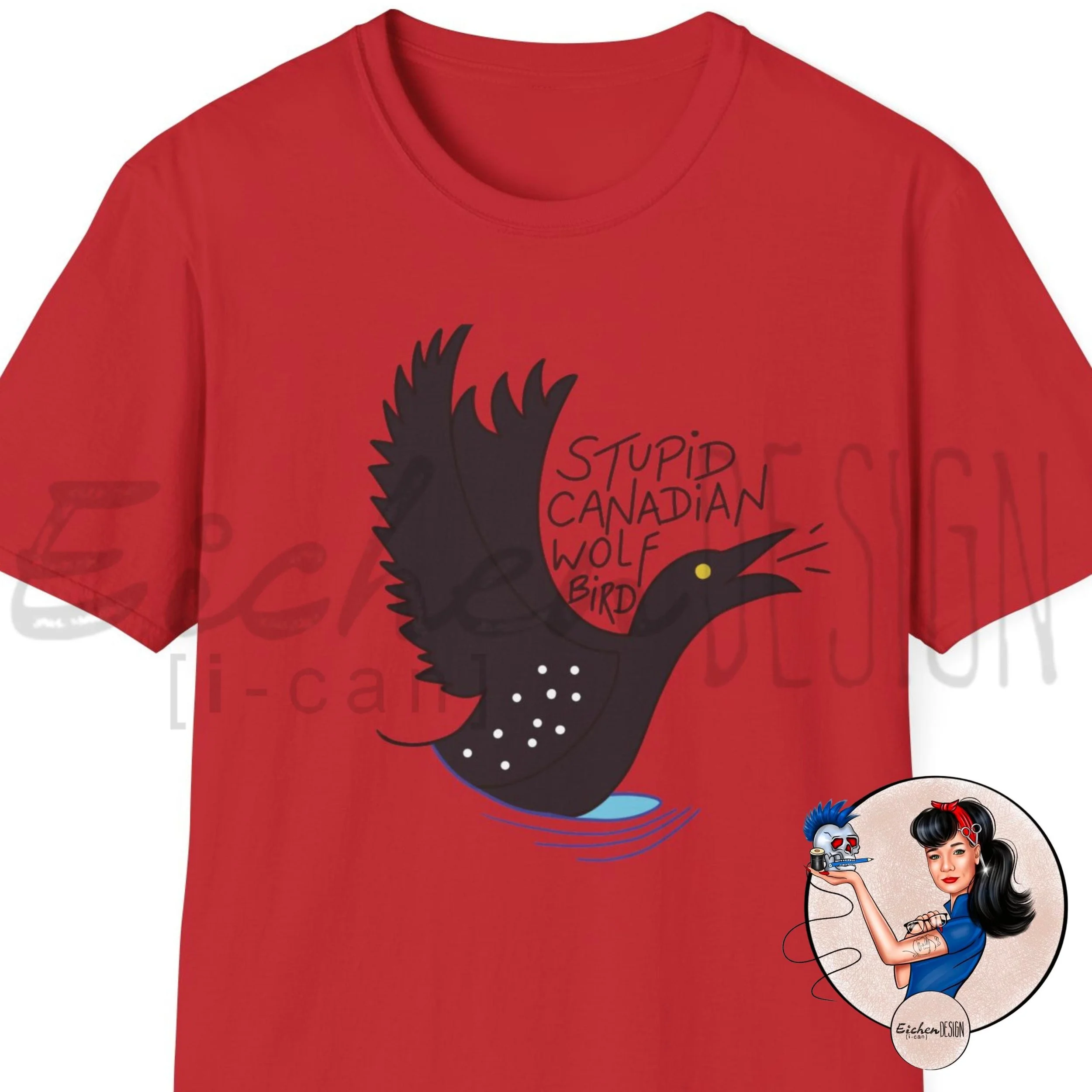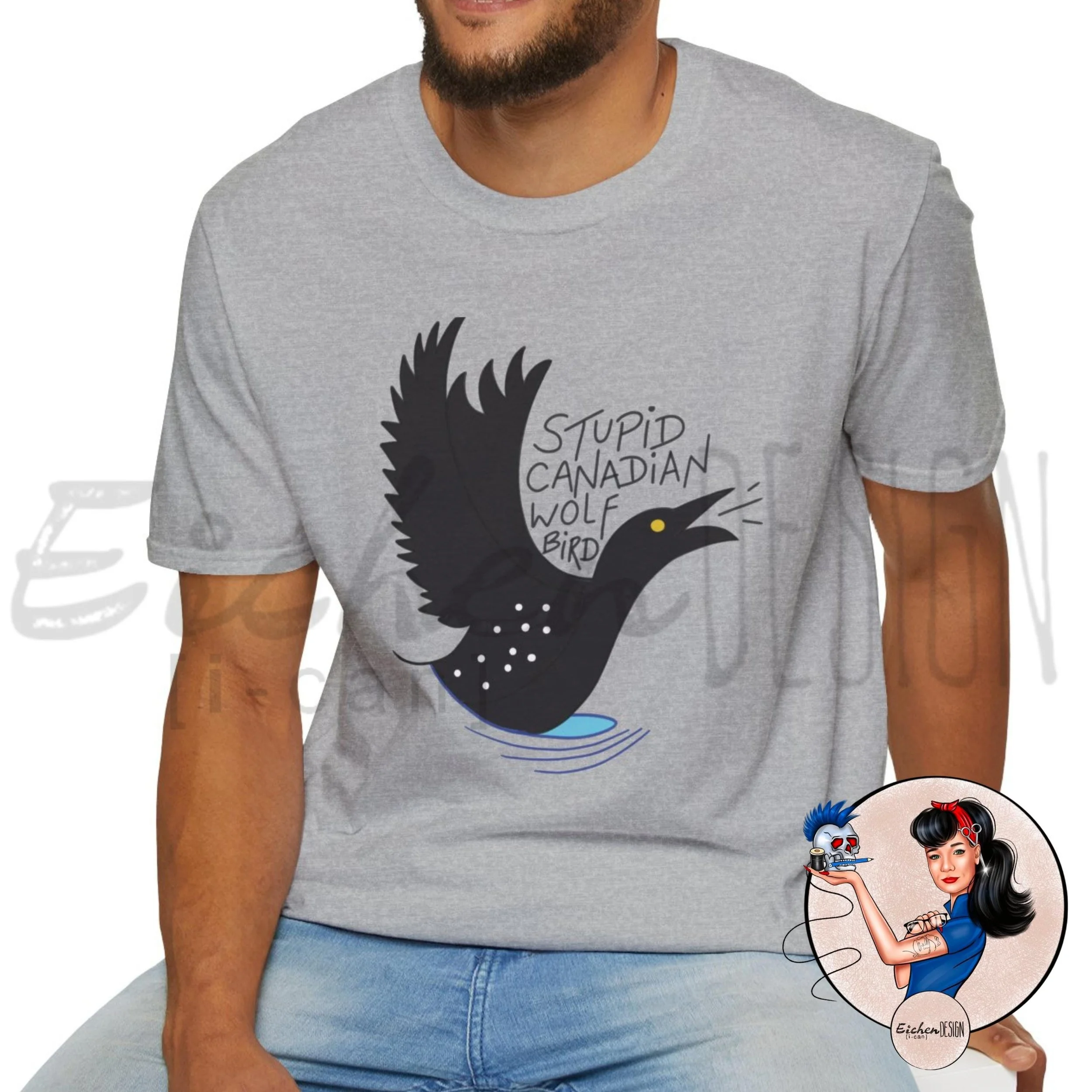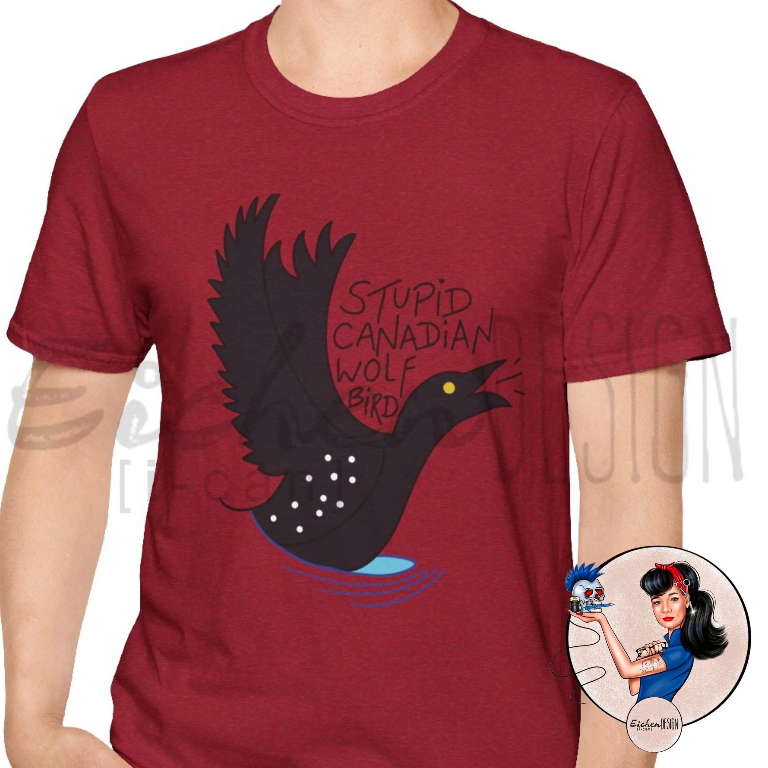 T Shirt - Stupid Canadian Wolf Bird Loon Illustration T-Shirt | Lake Bird Heated Rivalry Hollander Rozanov Canada Cottage