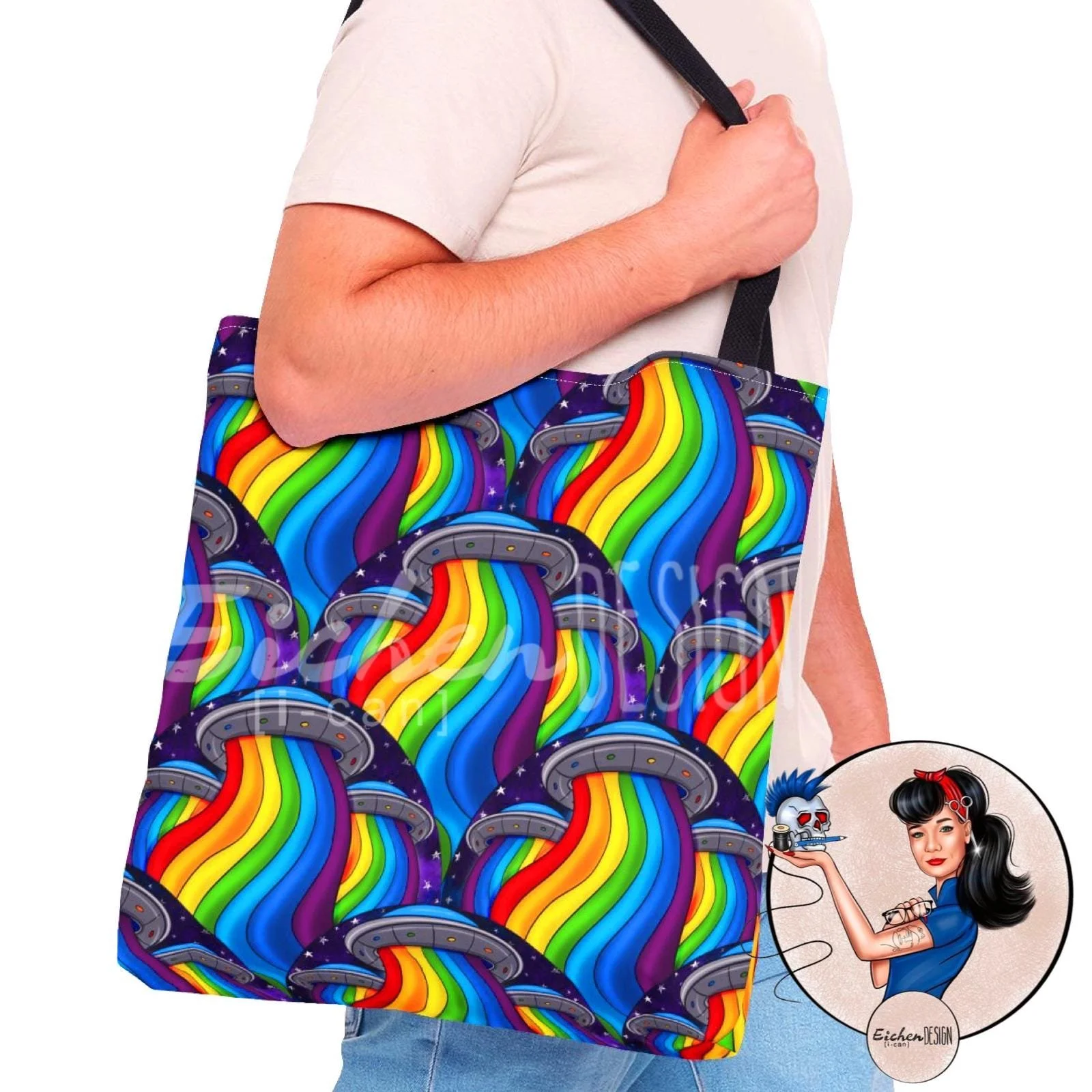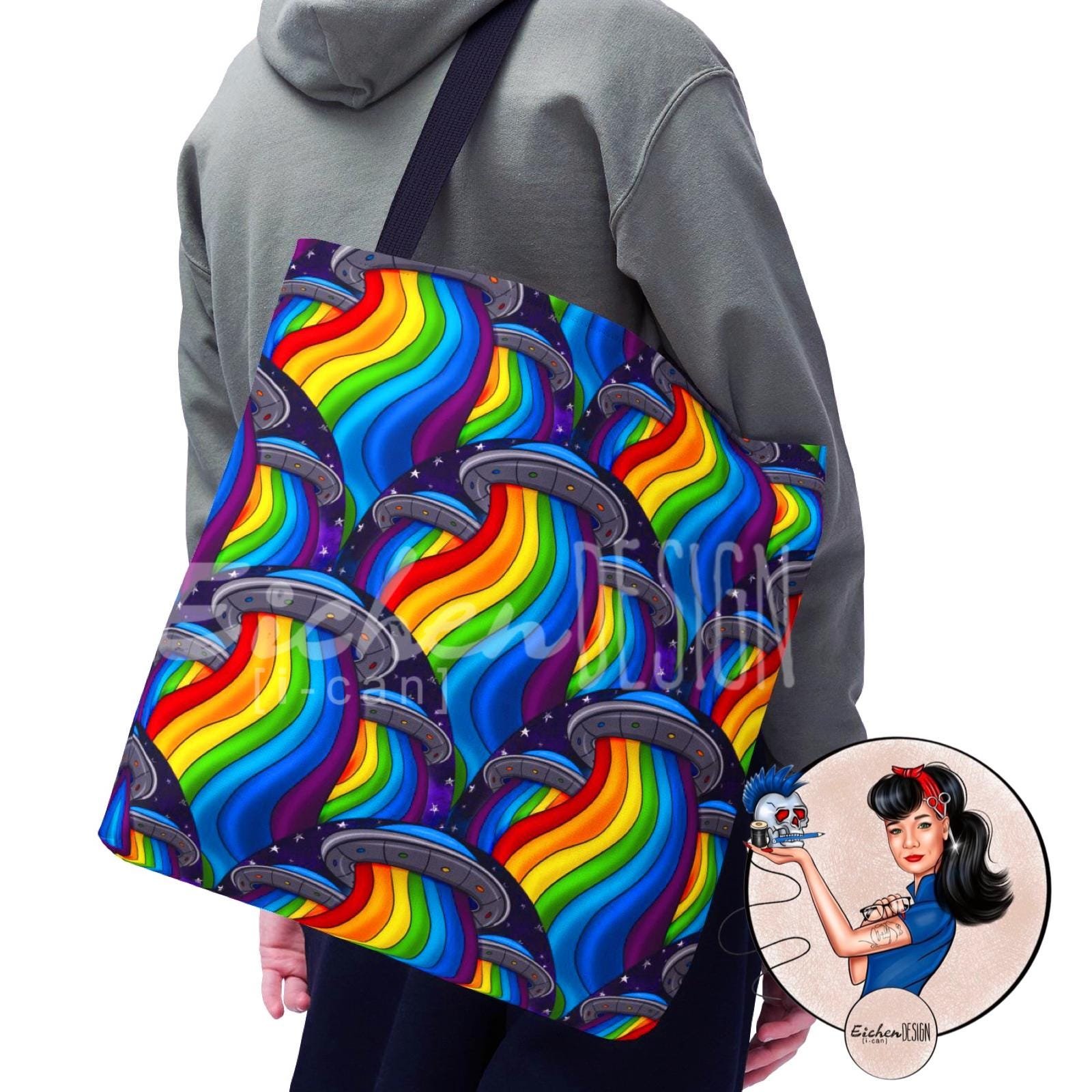 Introducing our vibrant Tote Bag, perfect for adding a splash of color to your everyday adventures. This eye-catching design features a playful rainbow pattern, celebrating fun and creativity. It's ideal for those who want to express their unique style while being practical. Perfect for students, artists, and anyone who loves to stand out. Use it for grocery shopping, a day out at the park, or as a stylish beach companion. These tote bags are especially great for gifts during holidays like Pride Month, birthdays, or just to brighten someone's day.