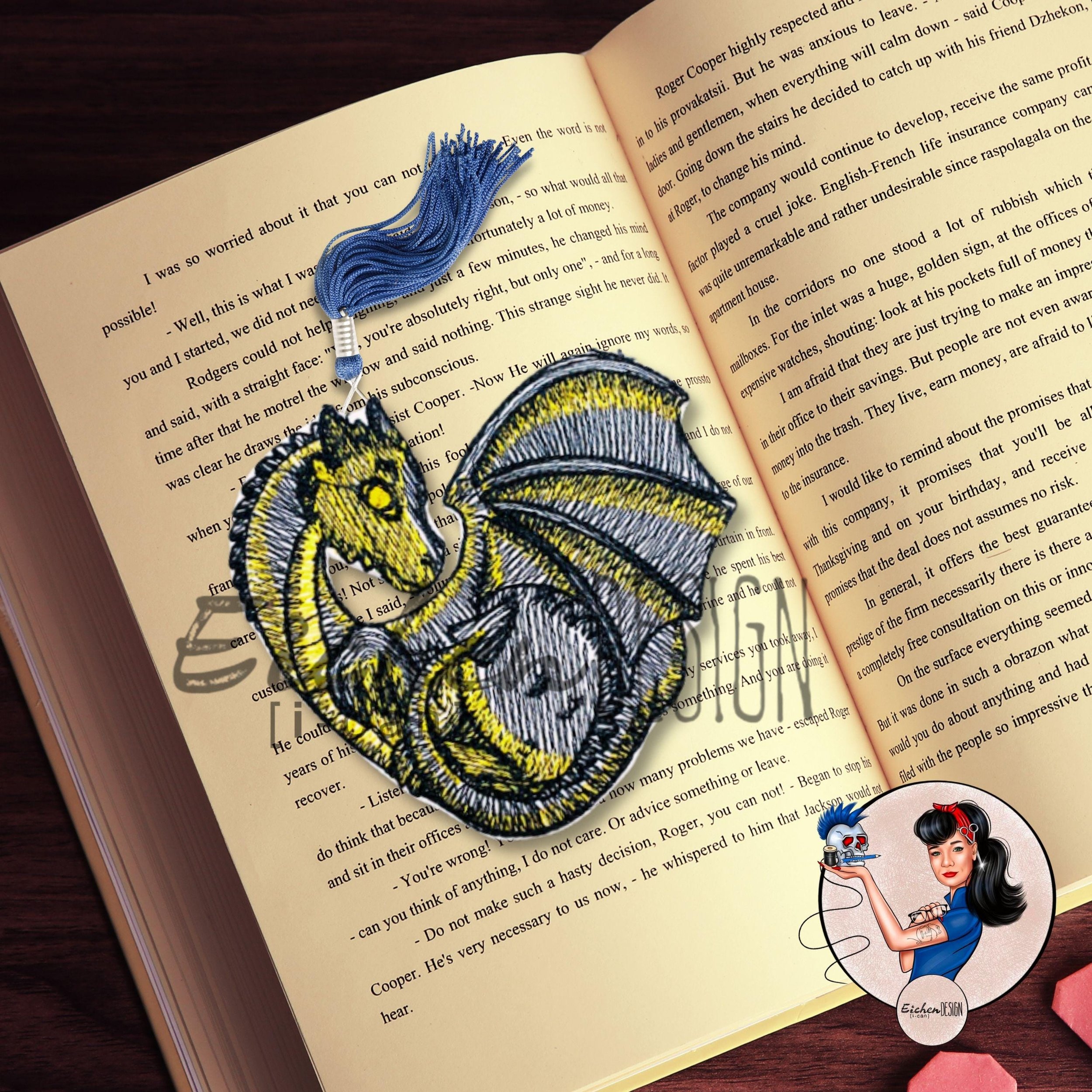 Bookmark Dragon Heart Embroidered - Romantasy Fantasy Gold Black Dragon Rider Book Lover Reader Gift Stitched Sewn Bookstagram Booktok