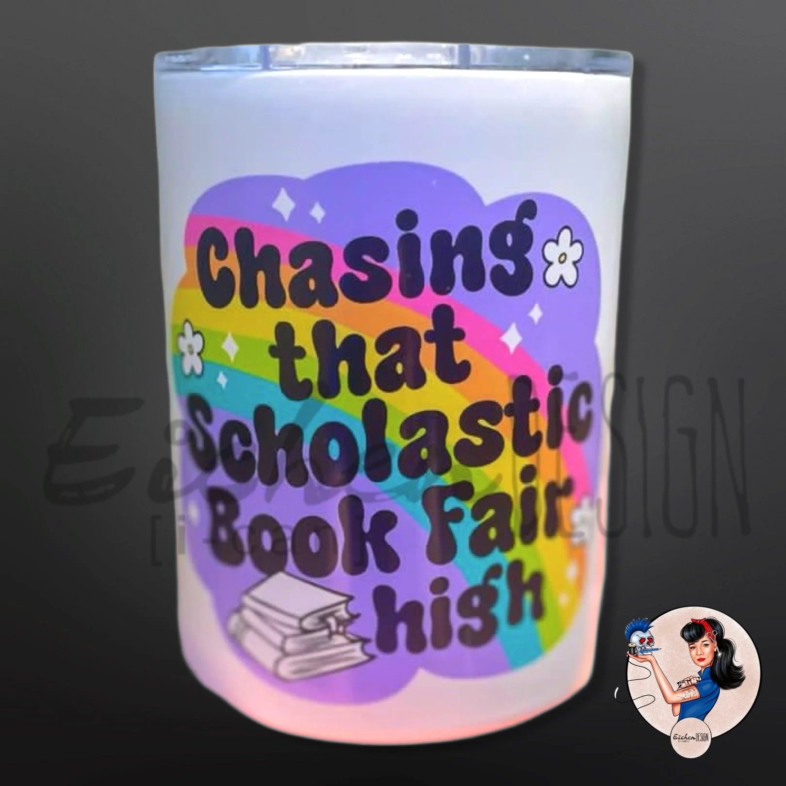 Custom printed stainless steel 12 oz tumbler complete with book nerd humor.