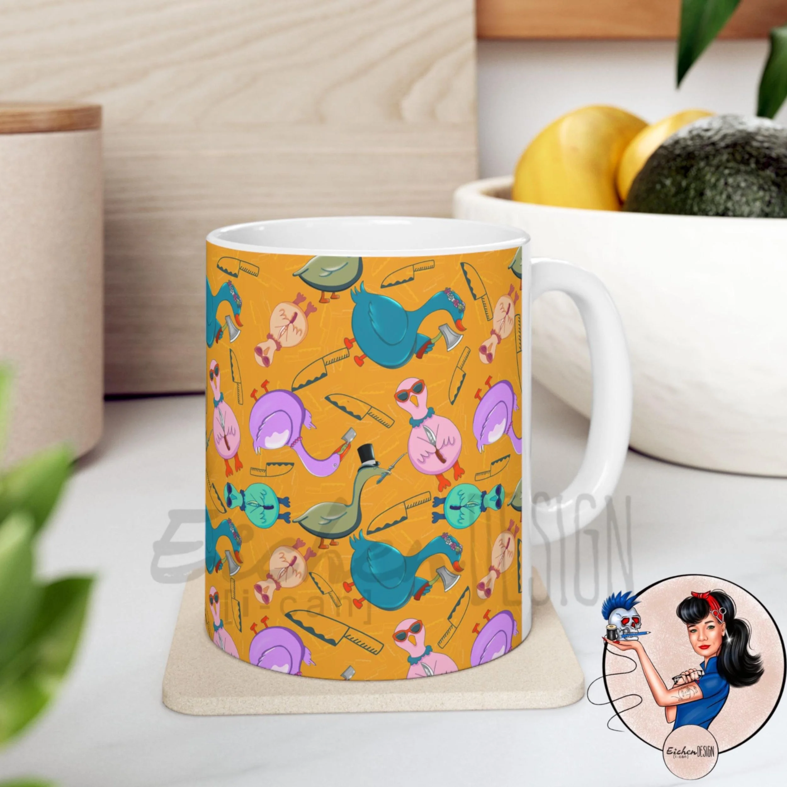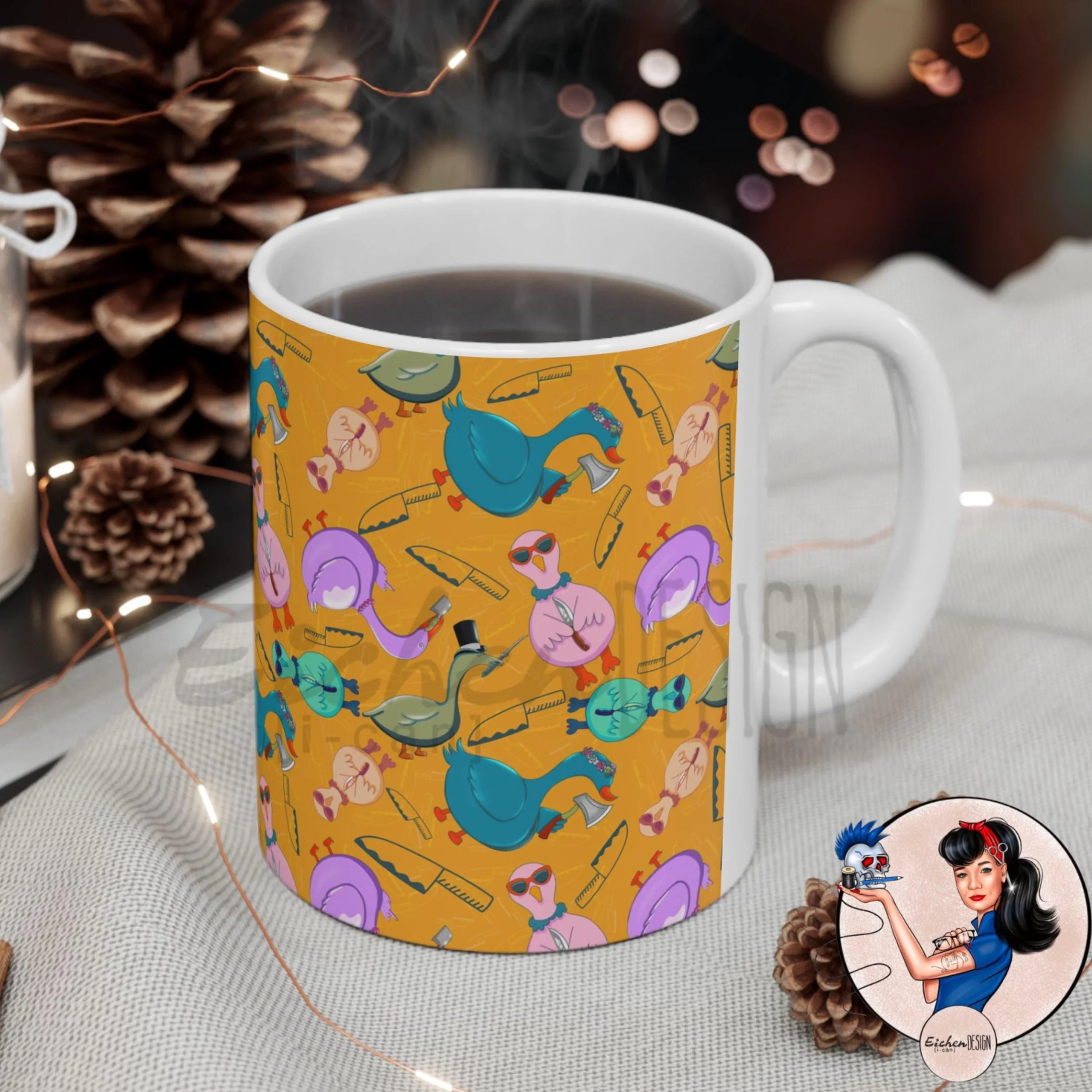 This cup's illustration is hand drawn by us here at Eichendesign!