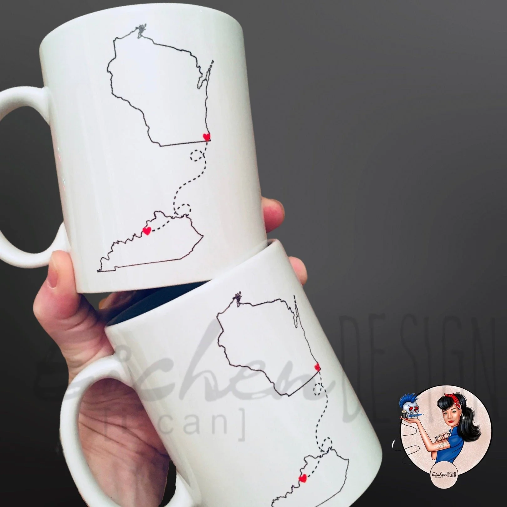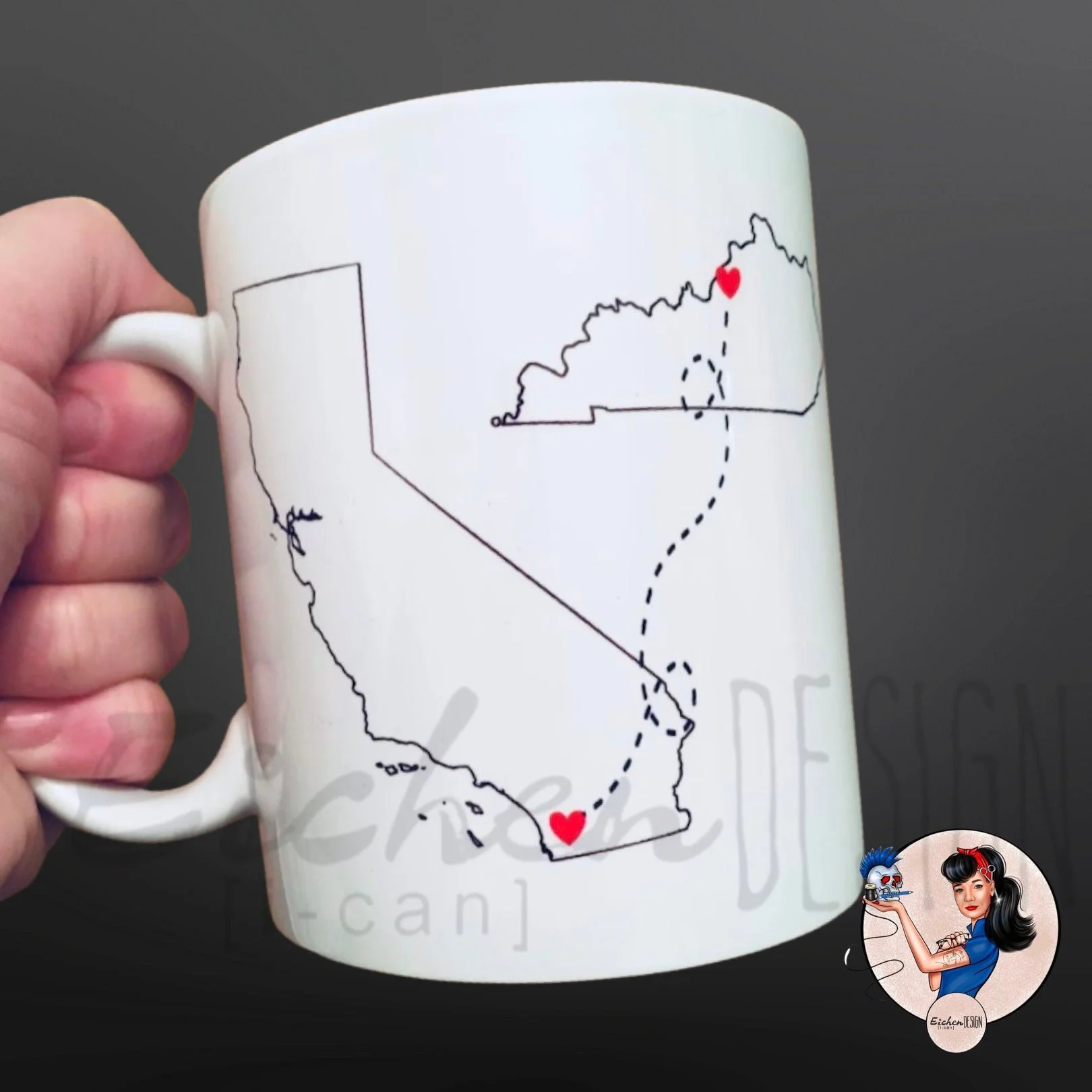 Mug State to State Friendship Heart Long Distance Travel Ceramic 11 oz 15oz