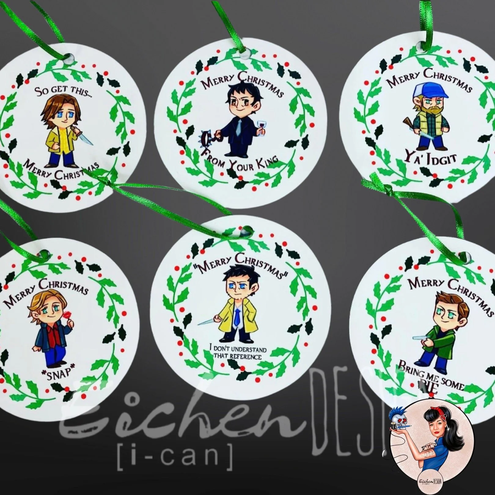 Supernatural ALL CHARACTERS AVAILABLE Inspired Christmas Ornament